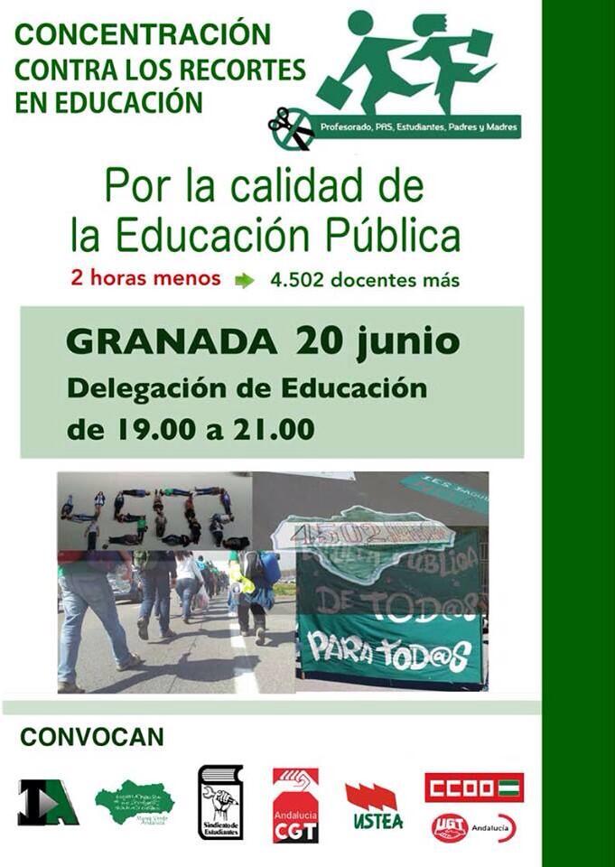 CONTACTA CON MAREA VERDE GRANADA: granadamareaverde@gmail.com Si quieres ser adherid@ a la lista de correo, si tienes alguna sugerencia o quieres publicar un artículo... Si puedes llevar información a tu centro, indícanos su nombre y añade "Difusión" al asunto. ¡Estamos en facebook y twitter!